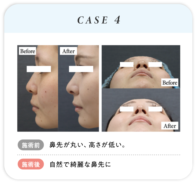 鼻フル整形を受けて半年が経ちました。カウンセリングでは、私の骨格に合わせた詳細なシミュレーションを見せていただき、安心して手術に臨めました。理想的な仕上がりになったと思います。特に良かったのは、安定感のある自然な仕上がりになったことです。周りからも「顔の印象が柔らかくなった」と好評です。