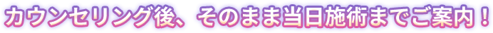 カウンセリングのみで終わらず、来院したその日に施術まで完了するため、スムーズに施術を受けられます。