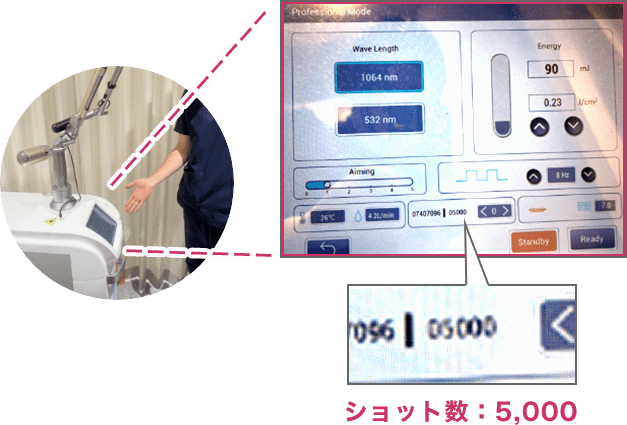 当院のピコトーニングでは施術後にショット数を開示しています。