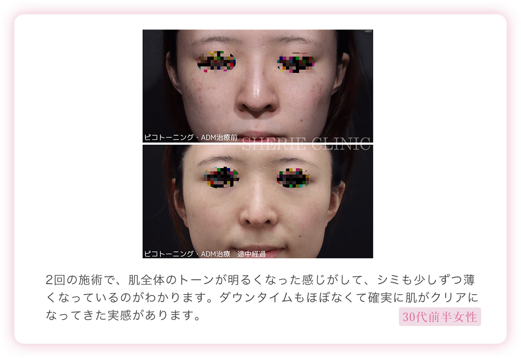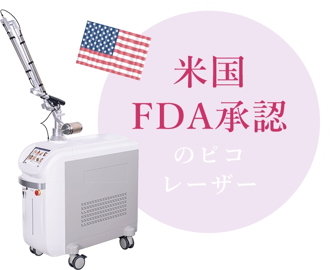 当院では、米国FDAの承認を受けた医療用美肌レーザー機器を使用しておりシミ・そばかす・肝斑・ADMなどの色素性病変に対して、高い効果と安全性が証明されていますので、安心して治療を受けていただけます。