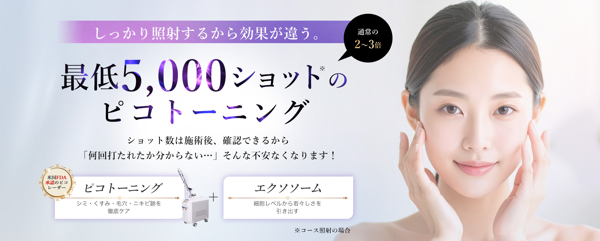 ピコトーニングは、従来のレーザー治療に比べて肌に優しく、シミやくすみ、色素沈着などの幅広い肌トラブルを改善できる新しい治療法として注目を集めています。最大の特徴は、ピコ秒という超短時間のレーザー照射によってメラニンをより細かく砕くことができる点です。