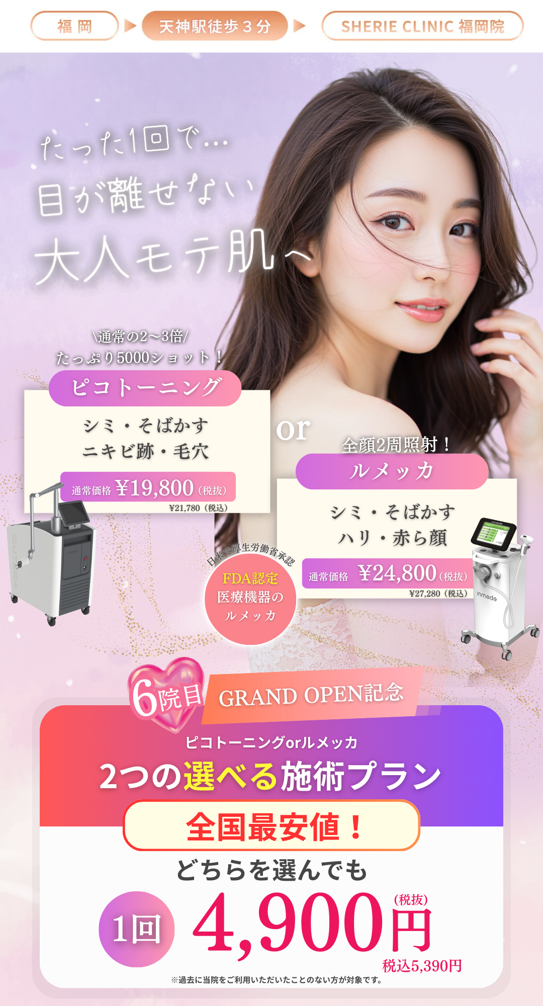 当院で使用しているピコトーニングは日本人の肌に合わせダウンタイムなく、従来のレーザーよりも少ない治療回数で高い効果を得られる画期的なレーザー治療です。