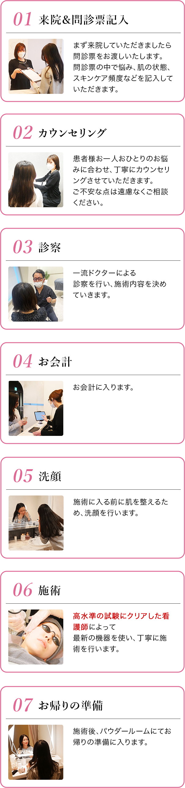 カウンセリングのみで終わらず、来院したその日に施術まで完了するため、スムーズに施術を受けられます。