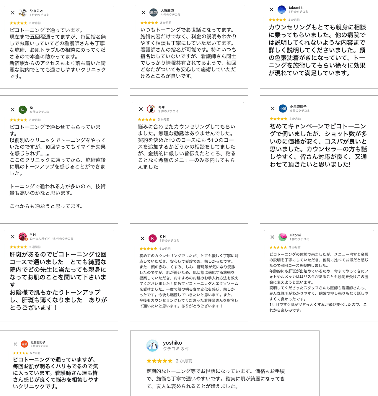 当院では、1回の施術で行うレーザーの照射数が通常の2〜3倍に設定されています。これにより、短期間で効果を実感しやすくなっています。