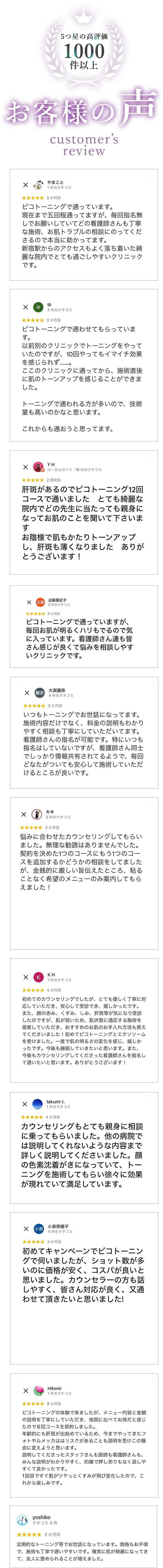照射数が多いからといって肌に負担をかけることはなく、安全で効率的な治療を実現しています。早く結果を得たい方や、忙しい毎日でもスムーズに美肌を目指したい方に最適な施術です。