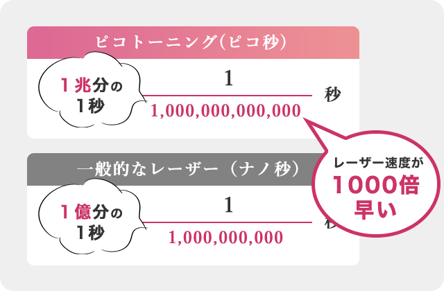 ピコトーニングは、従来のレーザー治療に比べて肌に優しく、シミやくすみ、色素沈着などの幅広い肌トラブルを改善できる新しい治療法として注目を集めています。最大の特徴は、ピコ秒という超短時間のレーザー照射によってメラニンをより細かく砕くことができる点です。