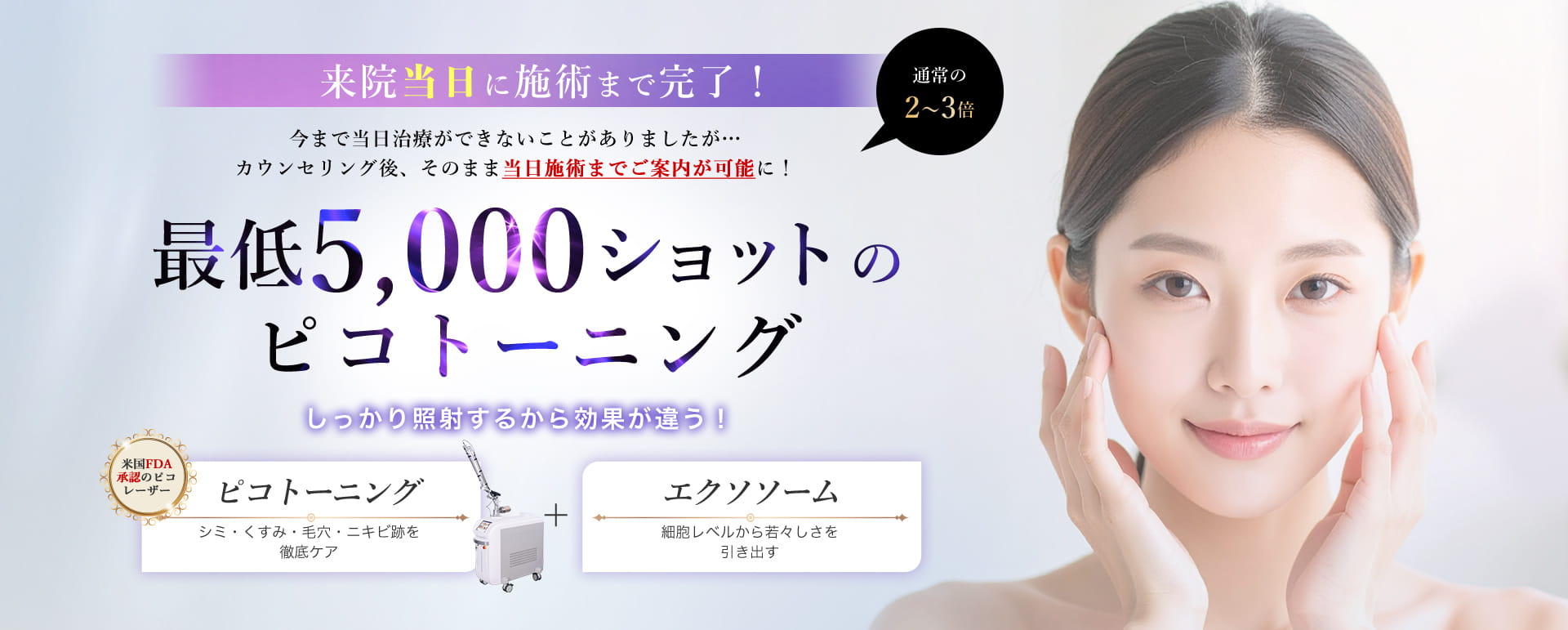 通常の施術よりもショット数が多いため、同じ回数の治療でも早く理想の肌に近づけることが可能です。