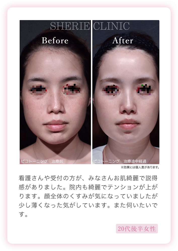 当院では、1回の施術で行うレーザーの照射数が通常の2〜3倍に設定されています。これにより、短期間で効果を実感しやすくなっています。