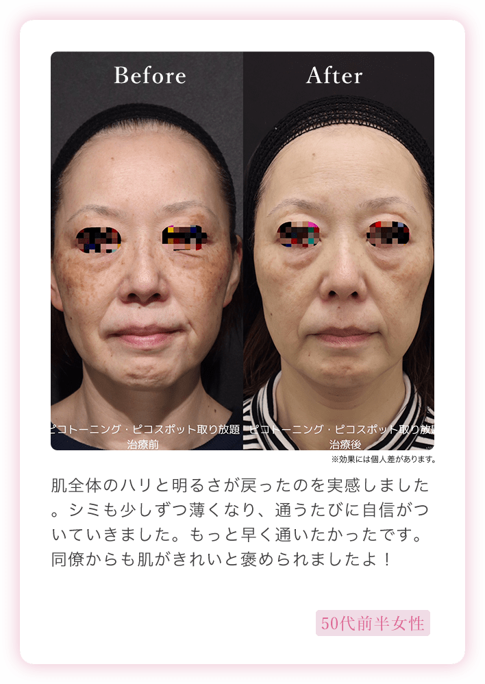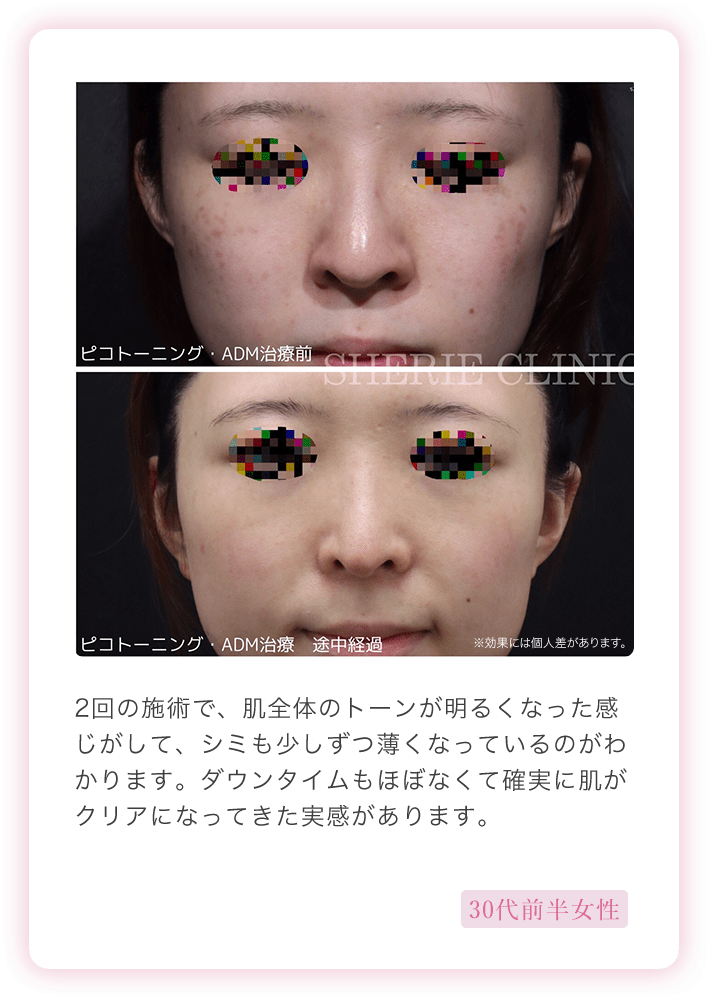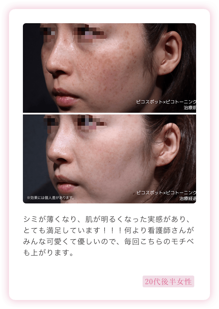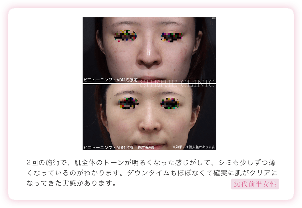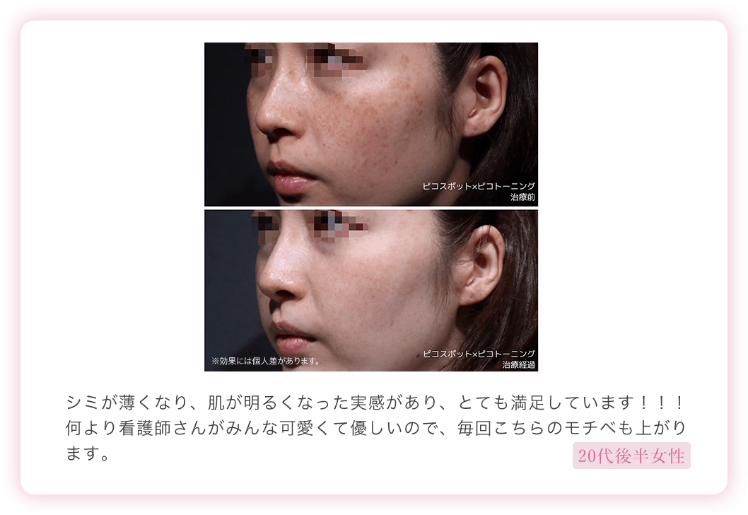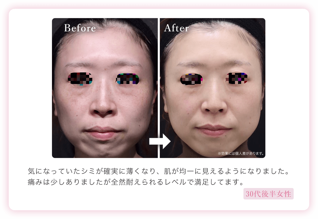 当院では、米国FDAの承認を受けた医療用美肌レーザー機器を使用しておりシミ・そばかす・肝斑・ADMなどの色素性病変に対して、高い効果と安全性が証明されていますので、安心して治療を受けていただけます。