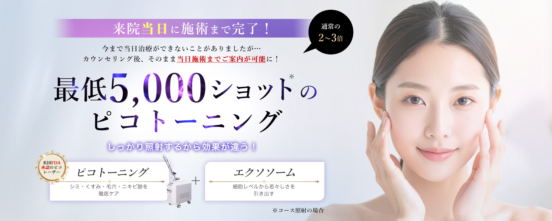 通常の施術よりもショット数が多いため、同じ回数の治療でも早く理想の肌に近づけることが可能です。