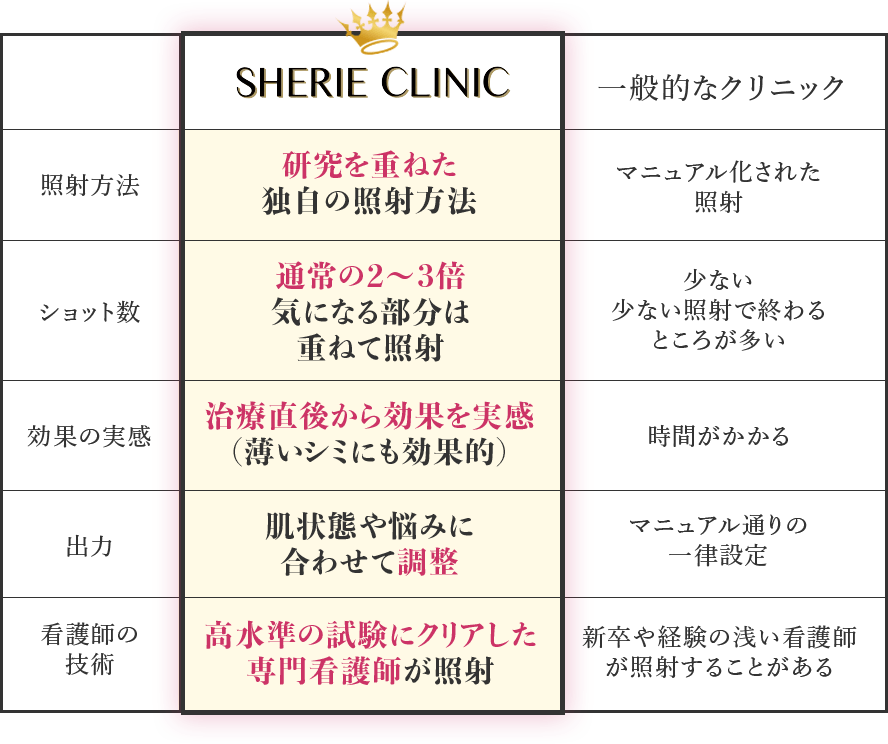 当院では、1回の施術で行うレーザーの照射数が通常の2〜3倍に設定されています。これにより、短期間で効果を実感しやすくなっています。