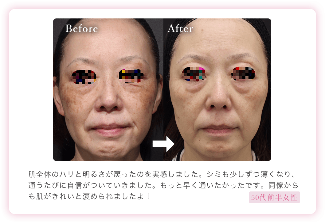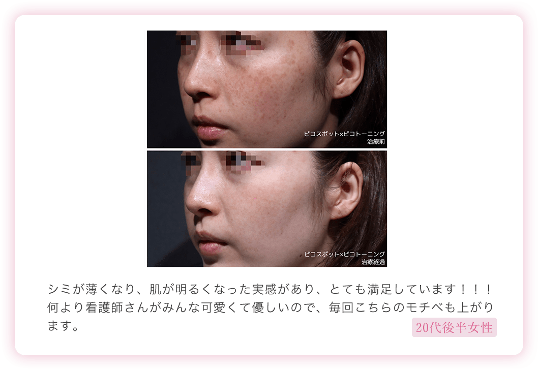 当院では、米国FDAの承認を受けた医療用美肌レーザー機器を使用しておりシミ・そばかす・肝斑・ADMなどの色素性病変に対して、高い効果と安全性が証明されていますので、安心して治療を受けていただけます。